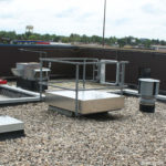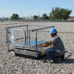An optional OSHA-Compliant Railing System is also available. This four-sided railing system is designed to improve personnel safety by guarding the open hatch and ensuring a safe, stable grip for employees entering and exiting the roof hatch.